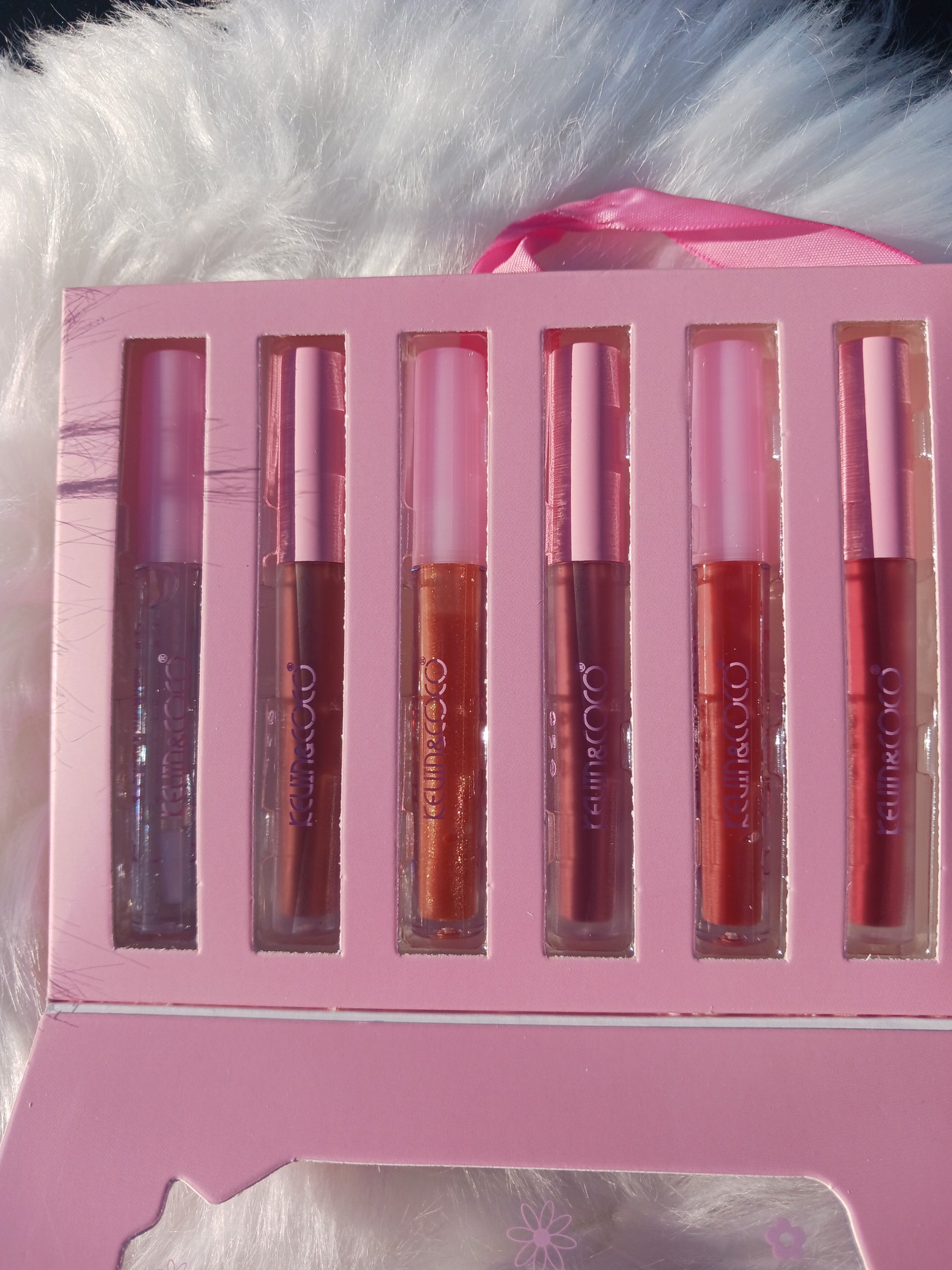 This set typically includes a selection of lip glosses in various shades of pink, ranging from soft, delicate pinks to deeper, bolder hues. The glossy formula delivers a high-shine, hydrating finish, giving your lips a plump and glossy look, while the matte formula provides a velvety, long-lasting finish for a more sophisticated, modern style.
